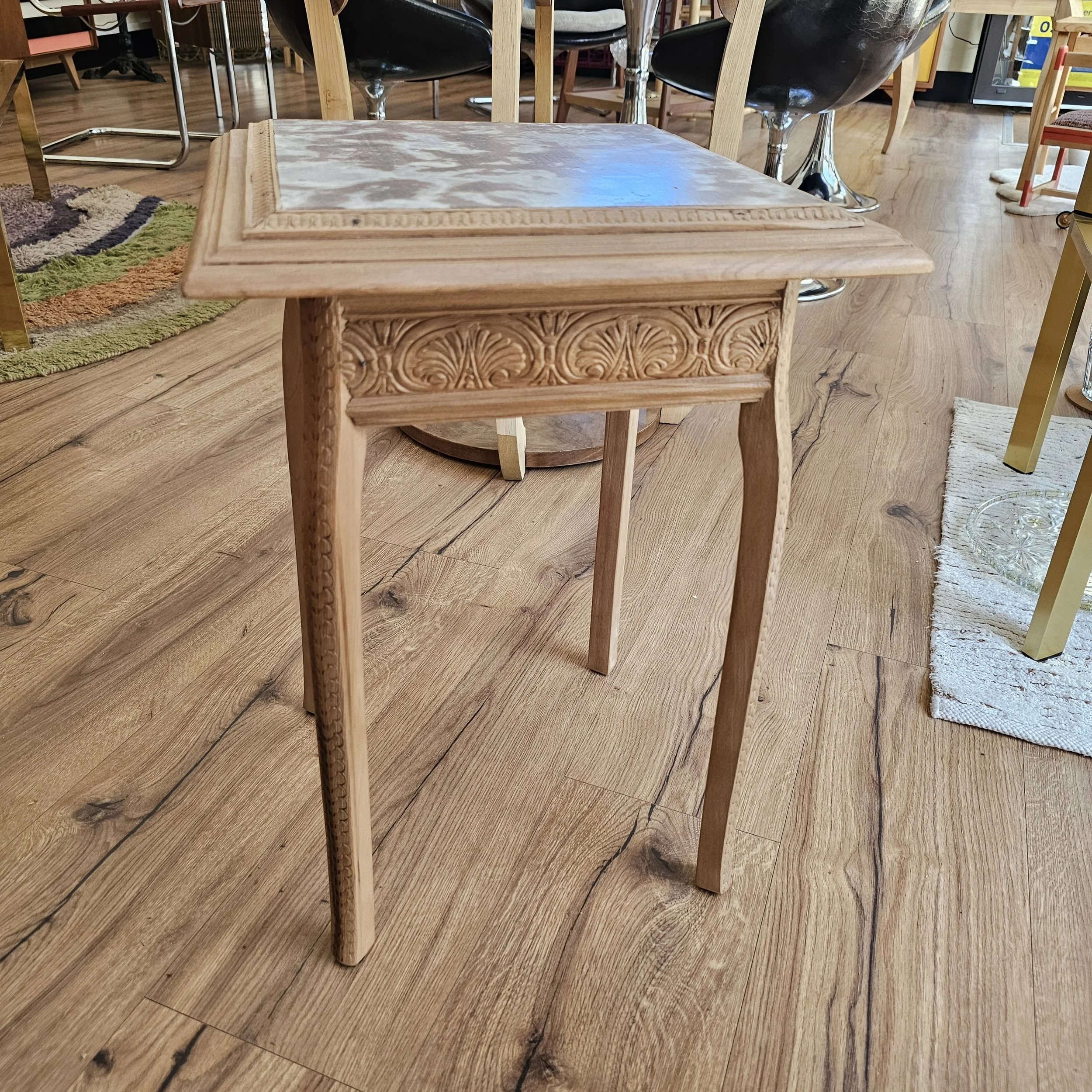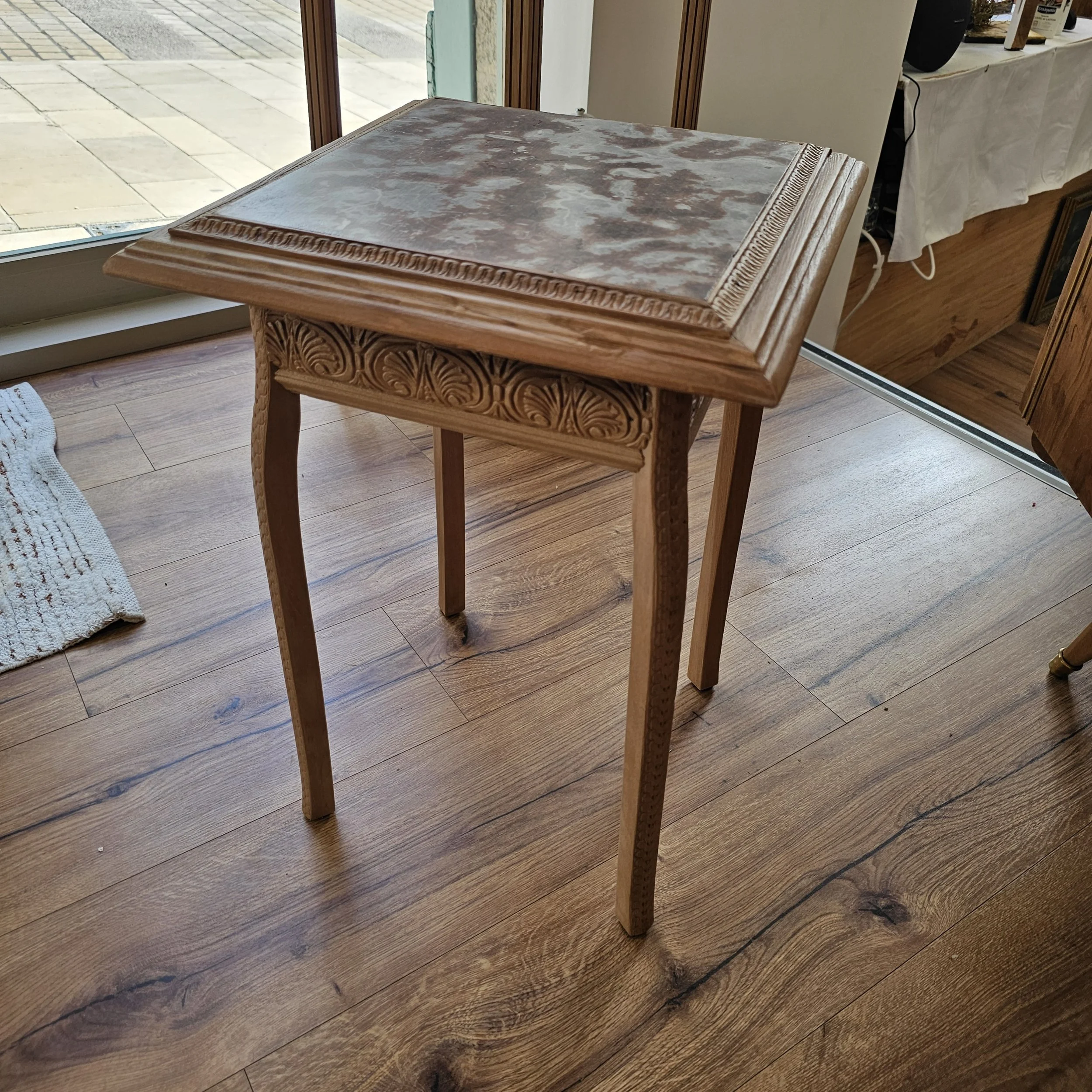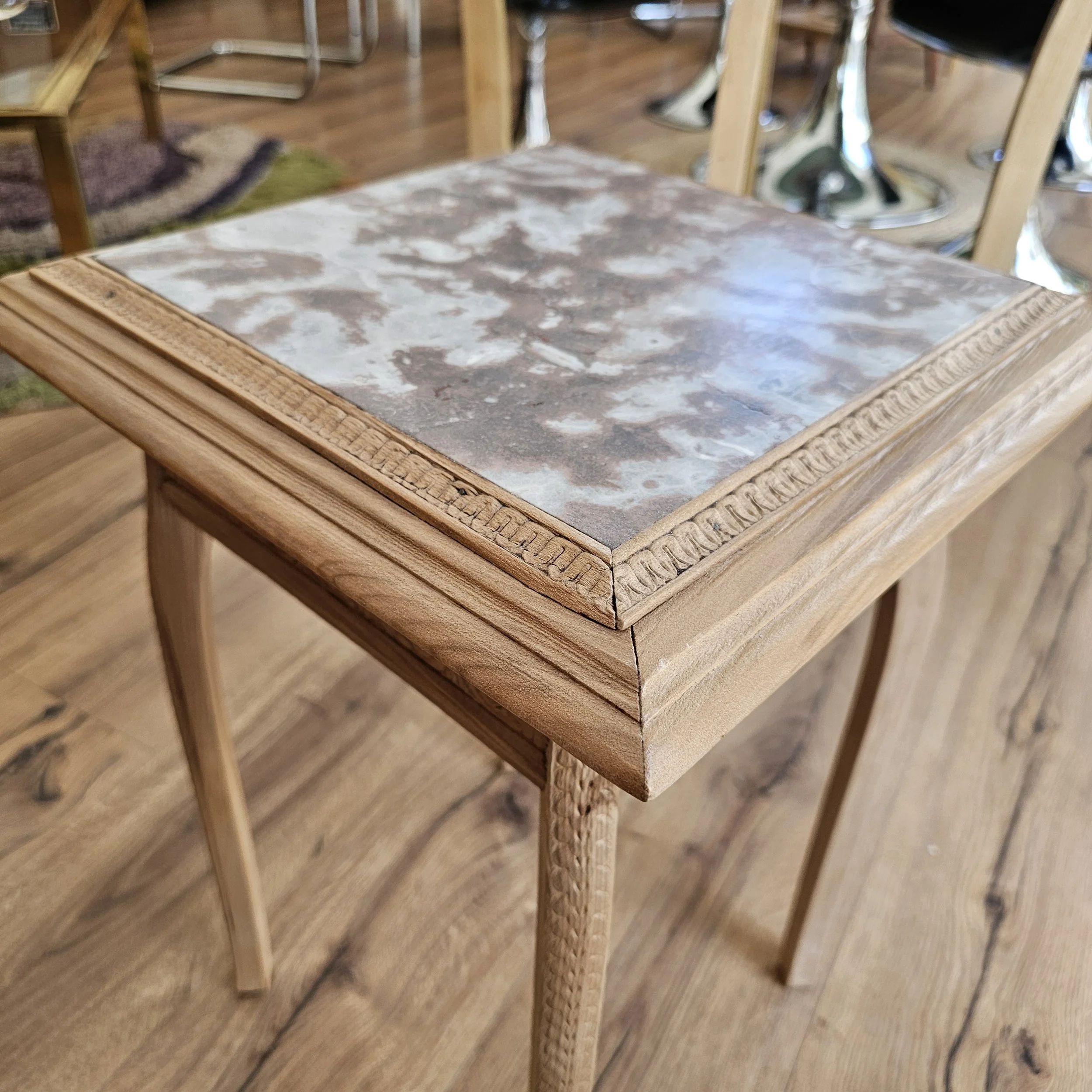 Cette table d’appoint vintage a fait l’objet d’une rénovation complète à l’atelier.