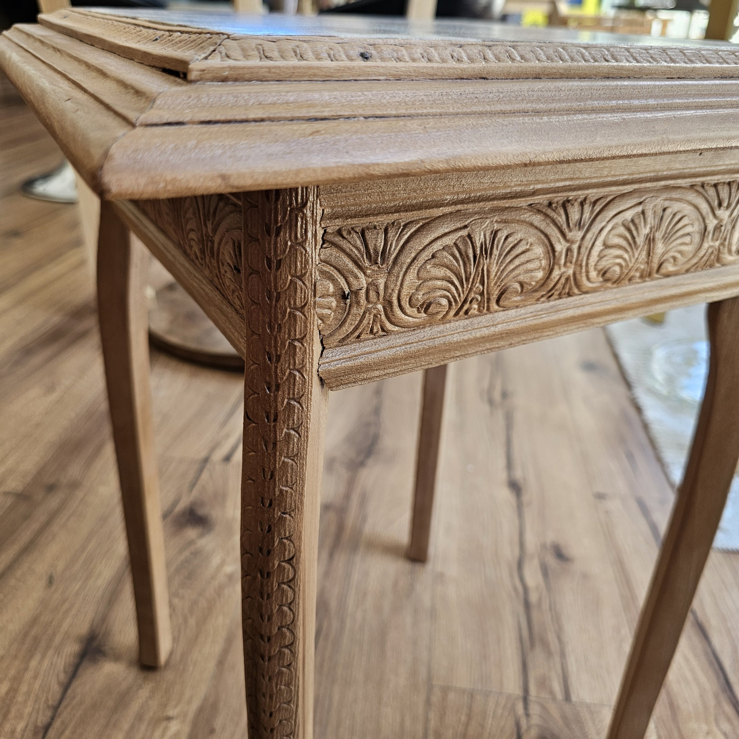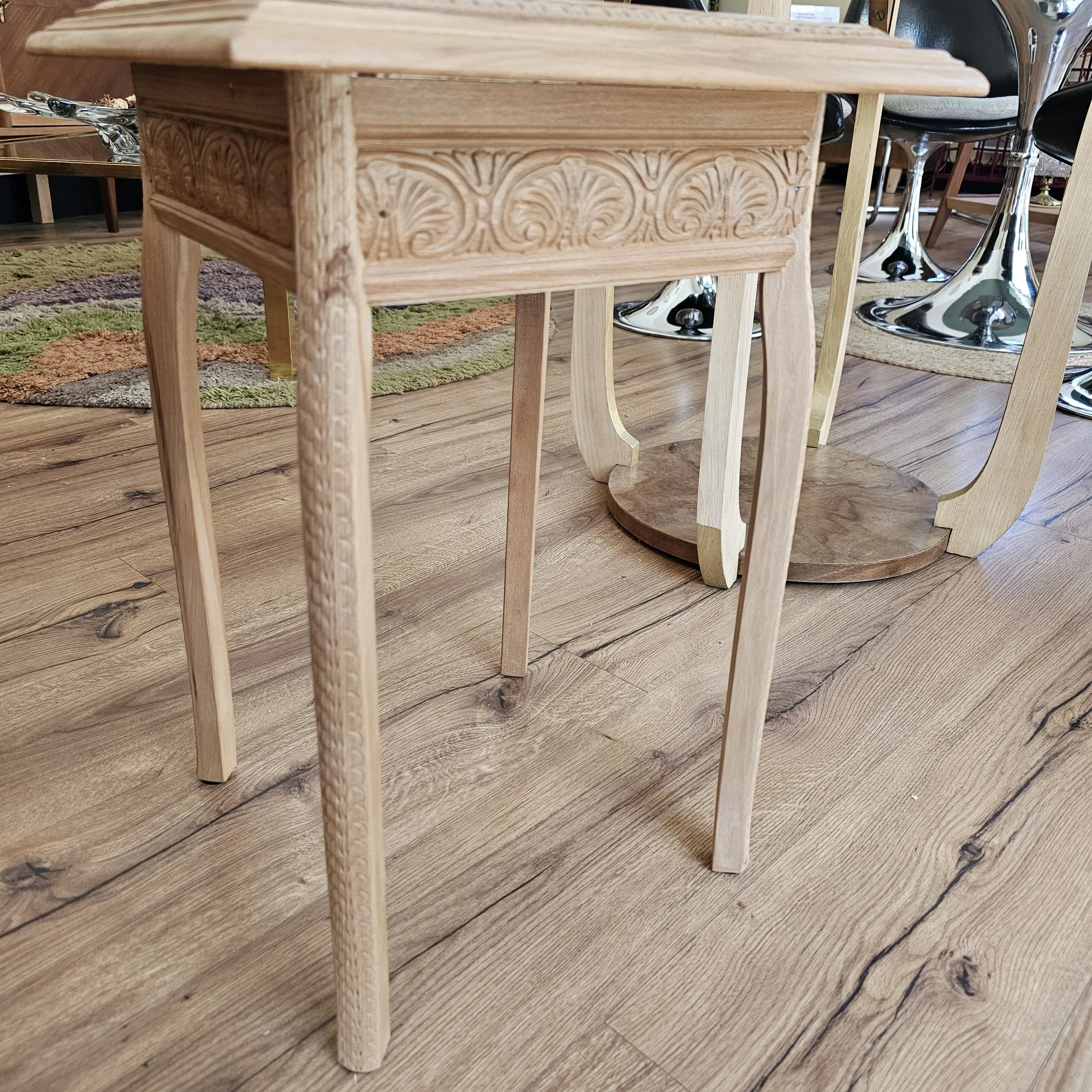 Avec ses lignes galbées, ses rangements latéraux et son miroir intégré, cette coiffeuse allie fonctionnalité, élégance et authenticité. Chaque détail – des pieds sculptés aux compartiments intérieurs – reflète le soin d’un travail artisanal minutieux.