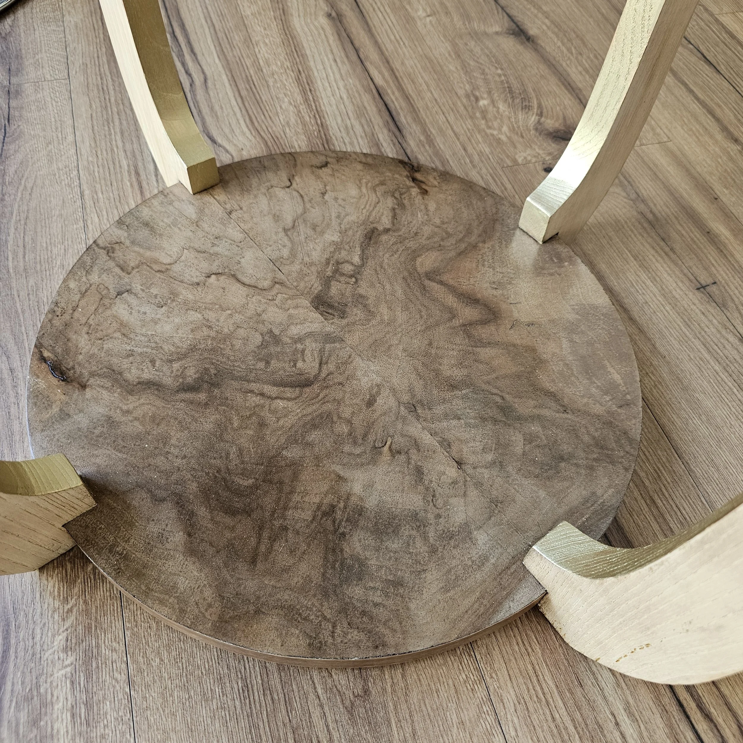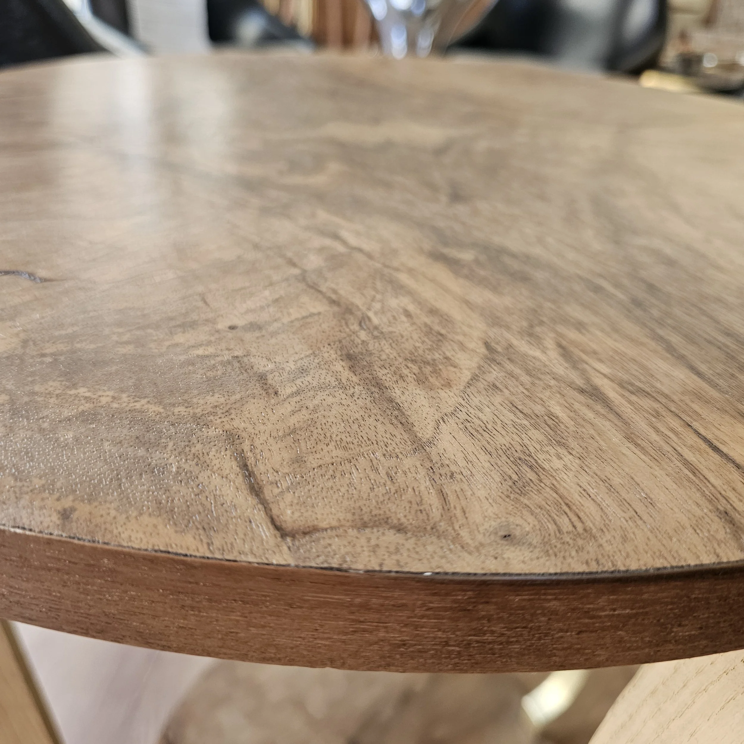 L’ensemble est protégé par un vernis brillant, qui vient sublimer les veinages et donner de la profondeur à la matière.
