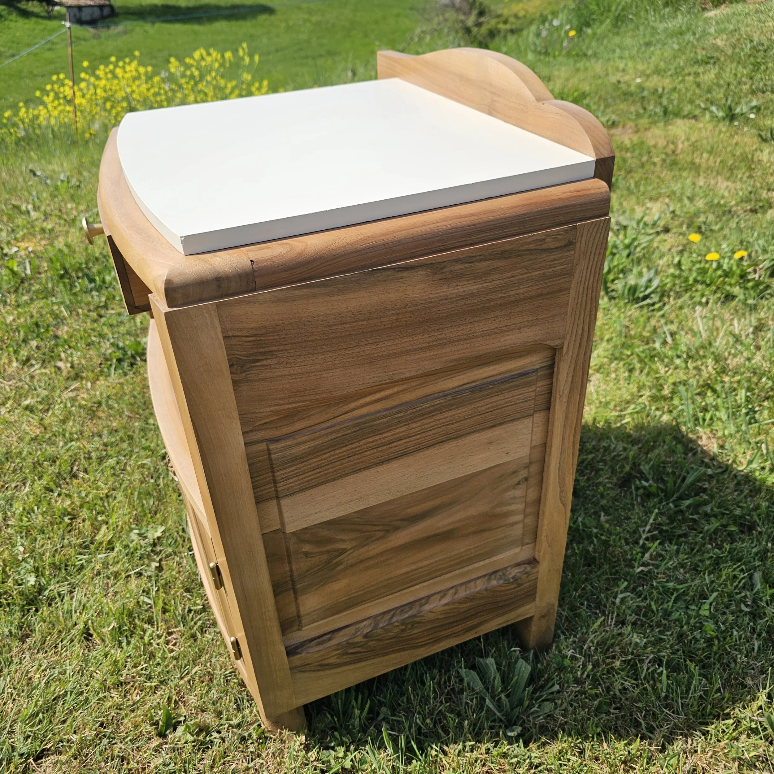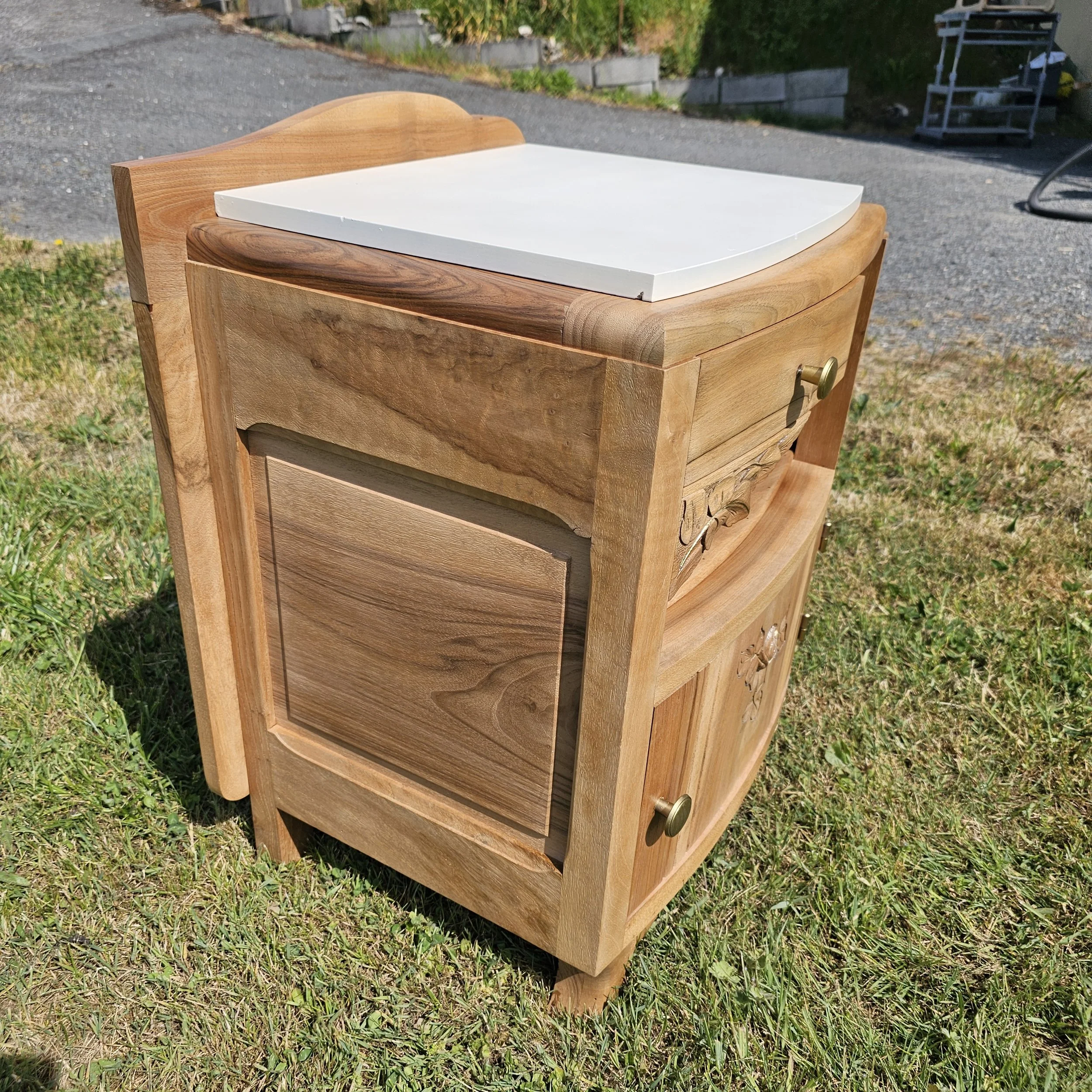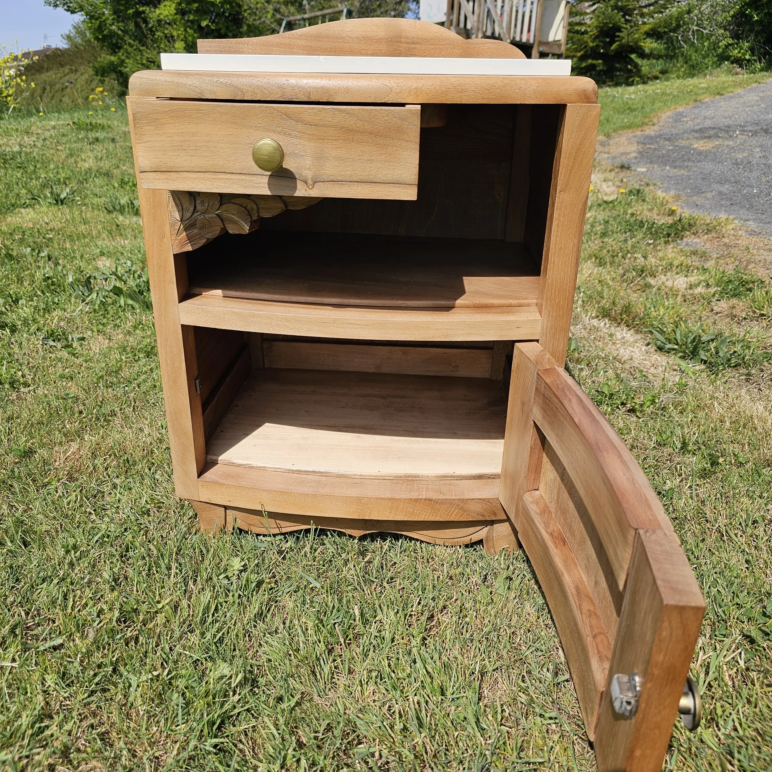 Avec ses lignes galbées, ses sculptures florales et son petit format pratique, il trouve facilement sa place en chevet, en bout de canapé ou en petit meuble d’appoint dans une chambre, une entrée ou un coin lecture.