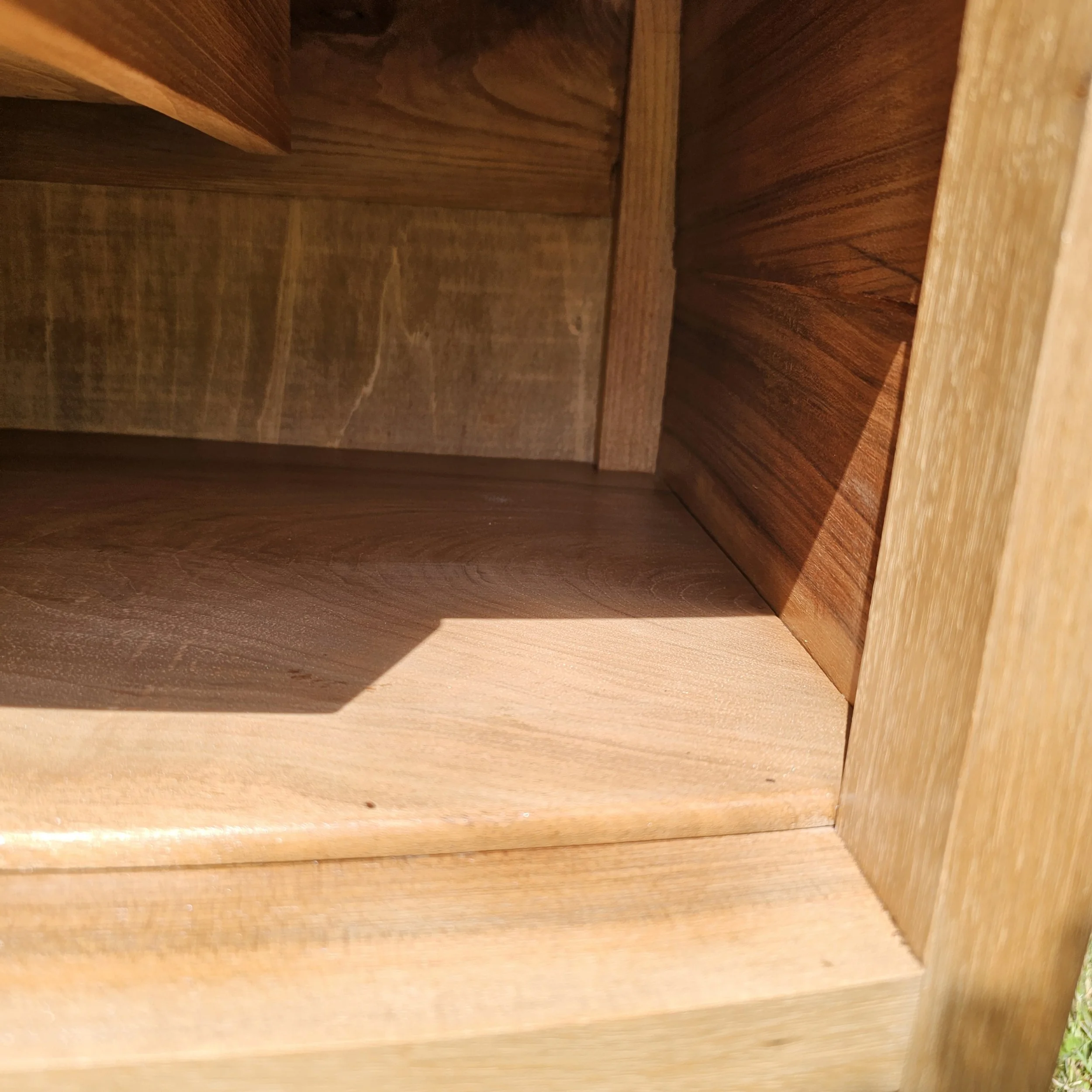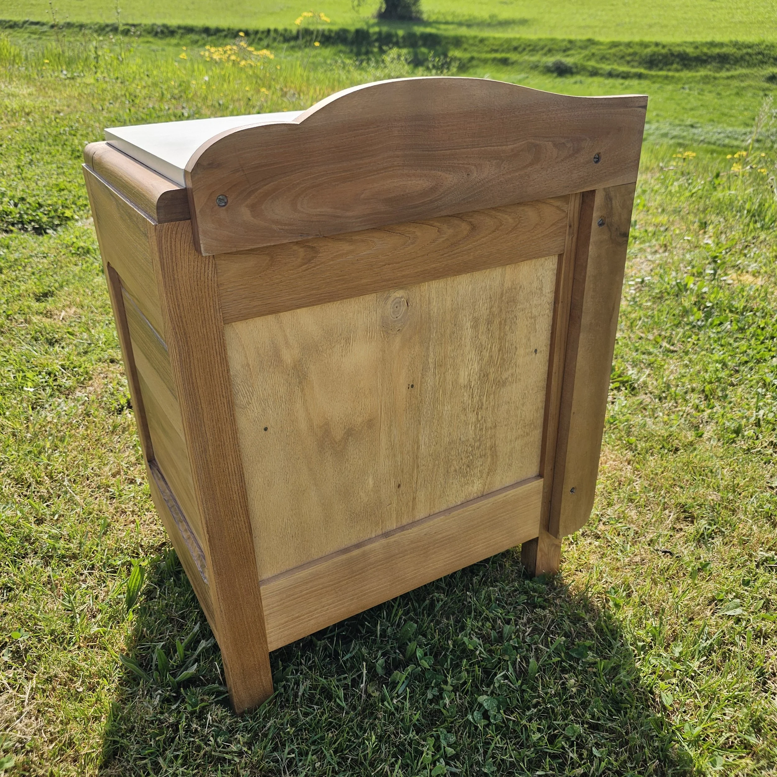 Cette pièce a été entièrement aérogommée, poncée, réparée, traitée, puis protégée avec un fond dur et un vernis incolore satiné, afin de préserver la beauté naturelle du bois tout en lui apportant une finition soignée et durable.