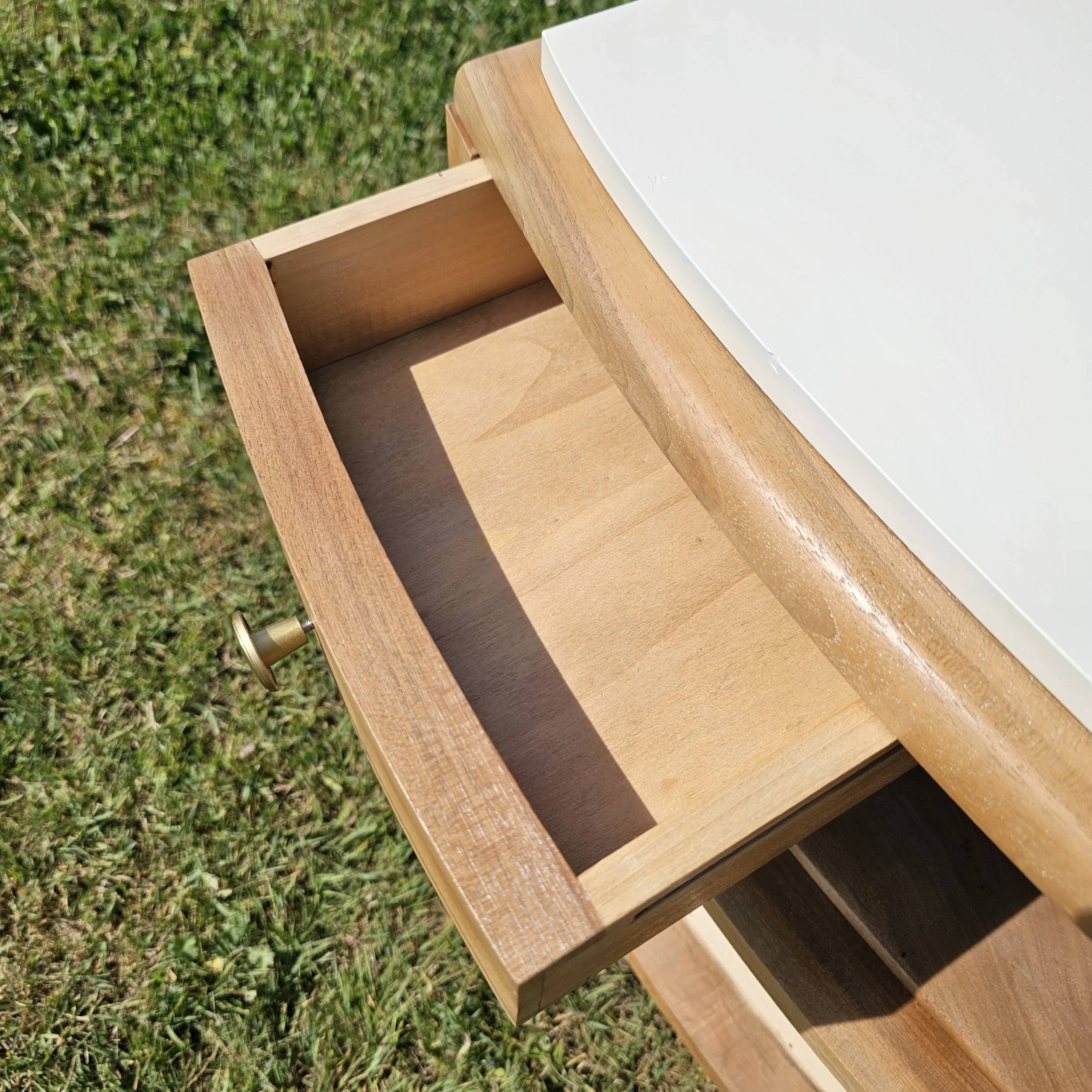 Charmant petit meuble d’appoint en bois, entièrement rénové à l’atelier, au caractère doux et authentique.